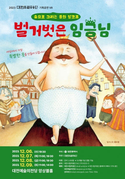 [충청뉴스큐] 대전시립무용단 기획공연 7 춤으로 그리는 동화 앙코르‘벌거벗은 임금님’공연이 12월 6일부터 9일까지 4일간 대전예술의전당 앙상블홀 무대에 오른다.