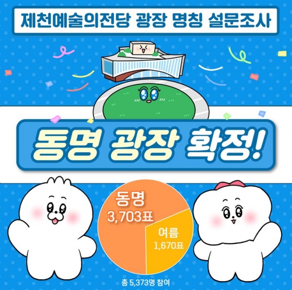 시는 동명과 여름 2개의 명칭 대상으로 지난 11월 1일부터 11월 30일까지 온라인으로 진행된 설문조사에서 총 5,373명의 시민이 참여했으며 이 중 3,703명이 동명광장 명칭에 투표해 최종 확정됐다.