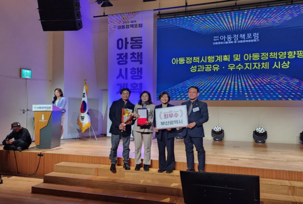 [충청뉴스큐] 부산시는 지난 12월 1일 보건복지부 주관 '지자체 아동정책 시행계획 평가'에서 17개 광역자치단체 중 최우수상을 수상했다고 밝혔다.
