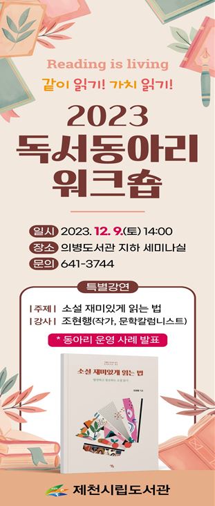 [충청뉴스큐] 제천시립도서관은 한해 독서동아리 활동을 마무리하는 ‘2023. 독서동아리 워크숍’이 오는 12월 9일 오후 2시, 의병도서관에서 개최된다.