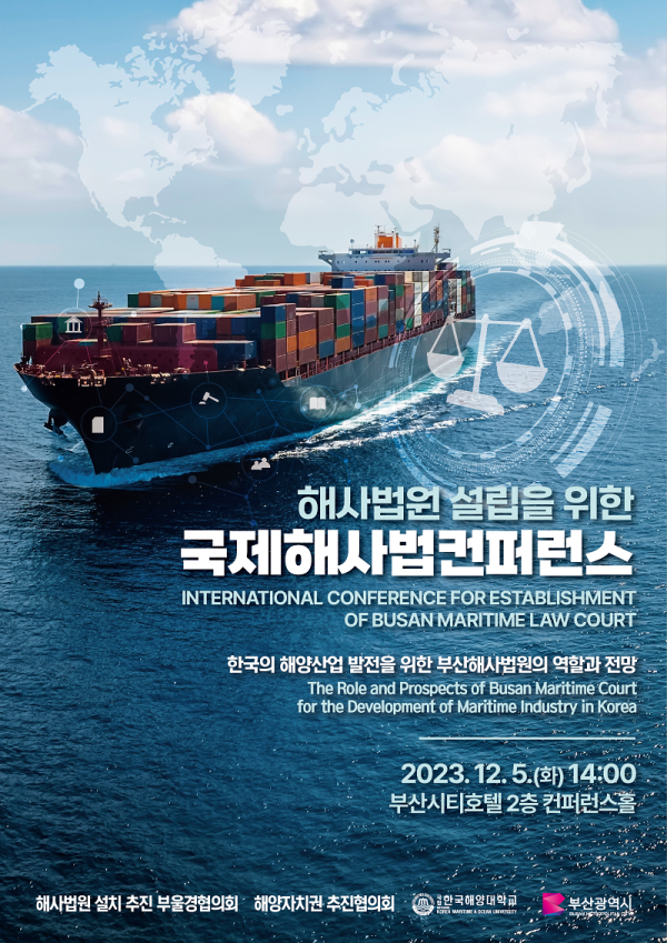 한국의 해양산업 발전을 위한 부산해사법원의 역할과 전망을 논의하기 위해 마련됐으며 해사법원 설치추진 부울경협의회, 해양자치권 추진협의회, 한국해양대, 부산시가 공동 주최한다.
