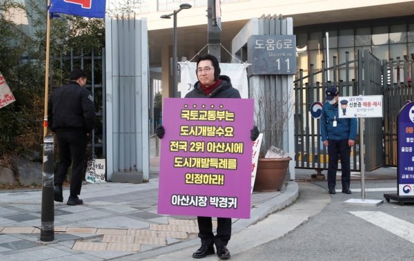이날 박경귀 시장의 1인 시위는 국토부에 다시 한번 아산시의 절실한 상황을 전달하기 위한 것이다.