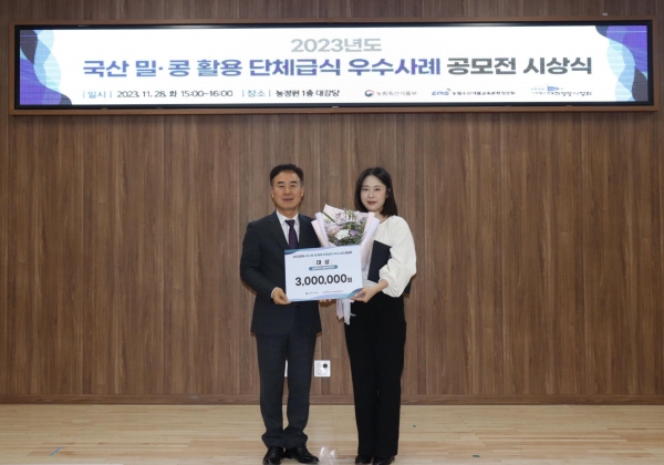[충청뉴스큐] 논산시 어린이·사회복지급식관리지원센터가 2023년 국산 밀·콩 활용 단체급식 우수사례 공모전에서 대상을 수상했다고 5일 밝혔다.