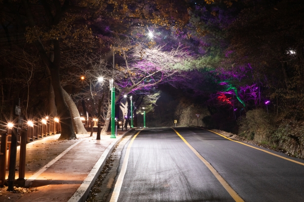 친환경 천연목재 데크와 경관조명 등을 설치해 보도 공간을 확장하고 우암산의 다채로운 야간 경관을 제공할 수 있게 됐다.