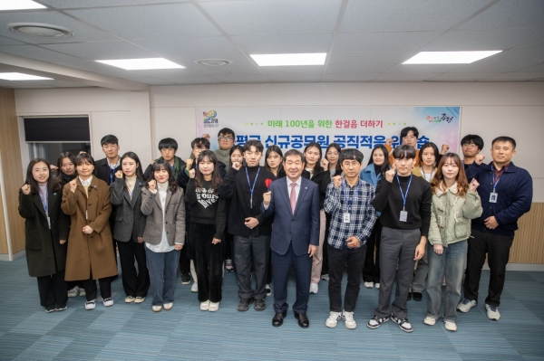 이 군수는 ‘미래 100년을 위한 한걸음 더하기’를 주제로 슬기로운 공직생활을 위한 마음가짐과 군의 미래를 책임질 신규공직자들의 패기 넘치는 도전정신을 강조했다.