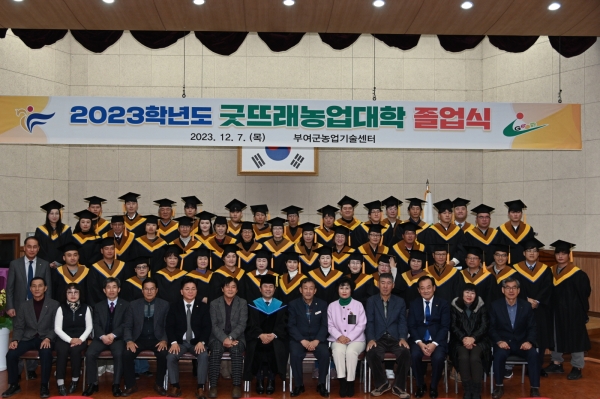 [충청뉴스큐] 부여군이 미래농업을 이끌 농업인재 양성을 목표로 운영한 제16기 굿뜨래농업대학 졸업식을 지난 7일 농업기술센터 대강당에서 성황리에 개최했다.
