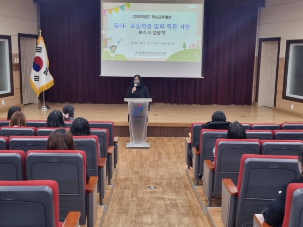[충청뉴스큐] 아산교육지원청 특수교육지원센터에서는 2023. 12. 7. 대강당, 대회의실에서 아산 관내 2024학년도 유치원, 초등학교 입학 예정 학생의 보호자를 대상으로 입학 적응 지원 보호자 설명회를 실시했다.