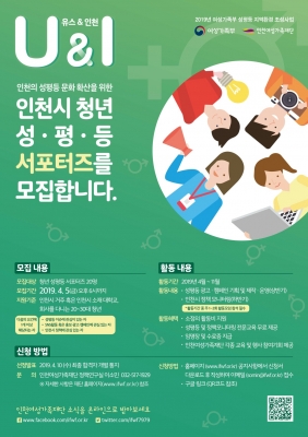 ‘인천 청년 성평등 서포터즈 U&I’은 ‘2019년 여성가족부 성평등 지역환경 조성 사업’의 일환으로 추진되는 사업으로, 올해 상반기에는 성평등 광고를 기획·제작하고 온·오프라인 캠페인을 진행한다.