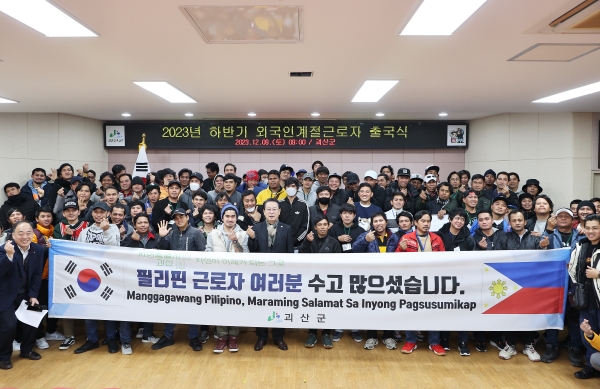지난 9일 괴산군은 농업기술센터에서 외국인 계절근로자를 위한 출국행사를 열고 고국으로 돌아가는 116명의 근로자를 환송했다.