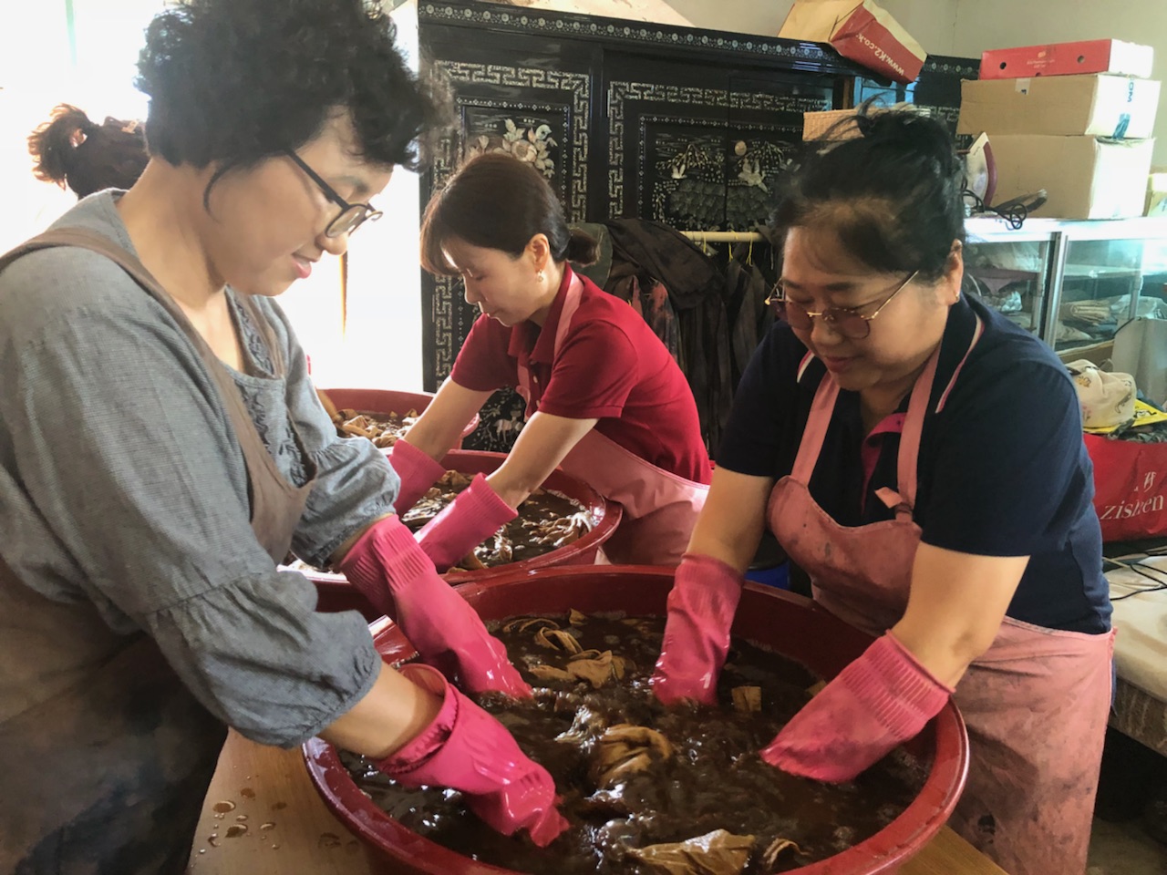이번교육은 지난 23일에는 보은읍 학림리에 위치한‘풀각시’에서 오배자, 아선약, 양파 등 다양한 염료를 활용하여 3가지 색상의 앞치마 천연염색 실습을 진행했고, 25일 2회차 교육에는 천연염색한 앞치마에 자수를 놓는 실습시간을 가졌다.