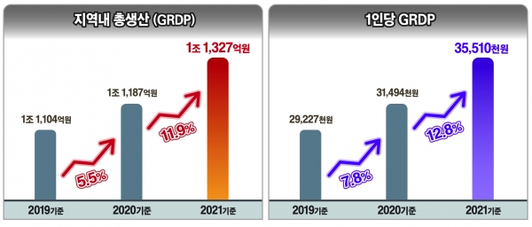 GRDP는 지역 내에서 창출된 최종 생산물 가치의 합으로 각 시·군내에서 경제활동별로 얼마만큼의 부가가치가 발생됐는지를 나타내는 경제지표다.