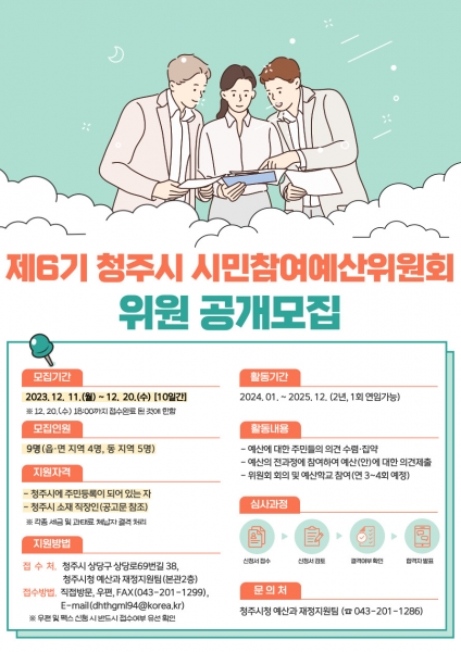 [충청뉴스큐] 청주시는 제6기 청주시 시민참여예산위원을 공개모집한다고 11일 밝혔다.