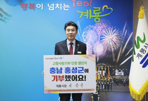 [충청뉴스큐] 계룡시는 이응우 시장이 지난 12일 올해 1월 1일부터 시행된 고향사랑기부제의 성공적인 안착 및 올바른 기부문화 확산을 위한 ‘고향사랑기부 인증 챌린지’에 동참했다고 밝혔다.