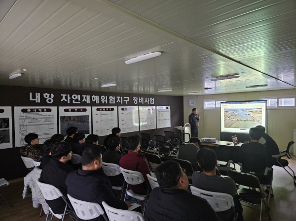 [충청뉴스큐] 보령시는 지난 14일 내항 자연재해위험개선지구 정비사업 공사 현장에서 토목직 공무원 40여명이 참석한 가운데 토목 전문지식 습득과 기술능력 향상을 위한 현장 견학을 실시했다.