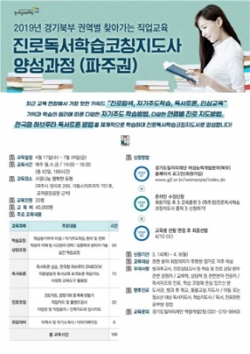 2개 과정으로, 파주권에서 진행하는 ‘진로독서학습코칭지도사’ 과정은 오는 4월 8일까지 모집한다. 포천권 ‘아동스피치지도사’ 과정은 4월 11일까지다. 교육 인원은 각 과정별로 20명이다.