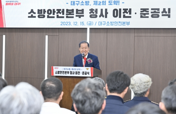 홍준표 대구광역시장은 “소방안전본부가 26년 만에 독립 소방청사로 이전하게 된 것을 축하한다”며 “시민들의 안전을 지키는 막중한 책임을 지고 있는 만큼 개선된 근무환경에서 더욱 수준 높은 소방 서비스를 제공하도록 노력해 주길 바란다”고 말했다.