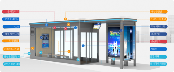 최신 정보 통신 기술을 적용해 실시간 버스도착 안내, 버스접근영상화면 등 대중교통정보를 제공할 뿐만 아니라 공공 무선인터넷, 유무선 휴대폰 충전 등 스마트 생활편의 기능 제공하고 실시간 모니터링 및 관리까지 돼 더욱 효율적으로 버스 승차 대기 장소 운영이 가능하다.