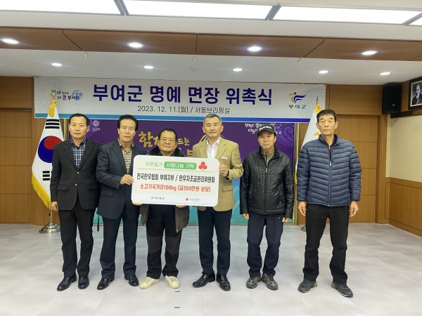 소명수 부여부군수는 “매년 나눔을 실천해 주시고 있는 전국한우협회 부여지부 관계자분들께 존경을 표하며 기탁 해주신 한우는 어려운 이웃들에게 많은 도움이 될 것이다”며 고마움을 전했다.
