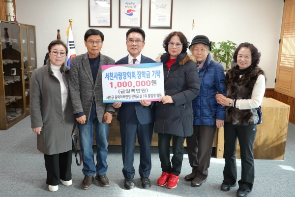 [충청뉴스큐] 서천군 종합교육센터 ‘중학학력인정 문해교육’ 졸업생 일동이 지역에서 꿈을 키우는 젊은 인재 양성과 지역 발전에 노력하는 서천사랑장학회에 장학금 100만원을 기탁했다고 19일 밝혔다.