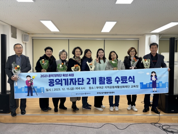 공익활동지원센터 남기라 팀장은 “다양한 공익활동 이야기를 취재하면서 공익기자단 2기 기자 분들의 공익활동 이해도 향상과 더불어 많은 부여군민들이 공익활동에 대해 접하는 계기가 됐다”며 “앞으로도 공익기자단 양성 사업을 통해 군민들이 지역 내 공익활동에 대한 이해도를 높일 수 있도록 하겠다”고 전했다.