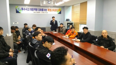 [충청뉴스큐] 대전소방본부 119특수구조단은 29일 오전 관평동 119특수구조단 회의실에서 현장지원대원, 현장기동대원 전원이 참석한 가운데 유해화학물질 유출사고 발생 대비 교육훈련을 실시했다.