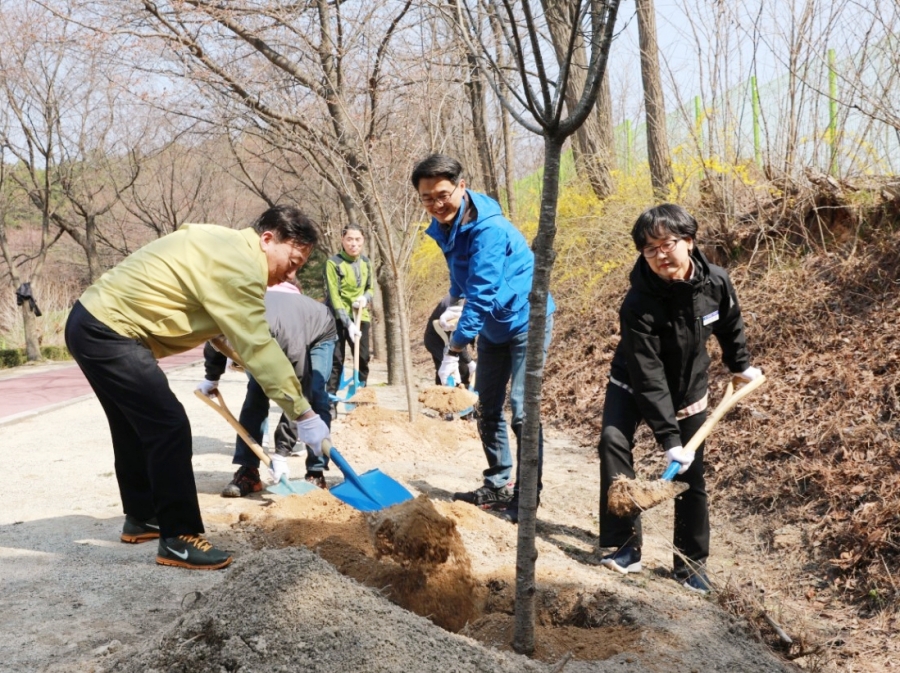 대전광역시교육청(교육감 설동호)과 대전교육청공무원노동조합(위원장 한상호)은 제74회 식목일을 맞이하여 29일 대전체육고등학교(유성구 원신흥로 소재)에서 식목행사를 실시했다“고 밝혔다. 이번 식목행사는 노사화합의 일환으로 설동호 교육감을 포함한 교육청 직원과 한상호 노조위원장을 비롯한 노조조합원 등 40여명이 참여했다. 영산홍 1,000주, 꽃잔디 200여본을 식재해 아름답고 푸른 교육 환경을 조성하고 나무심기의 중요성과 자연보호 정신을 되새기는 뜻깊은 자리였다. 대전교육청 설동호 교육감은 ″자연친화적이며 아름다운 교육환경을 우리 아이들에게 제공하기 위해 나무를 꾸준히 심는 것도 중요하지만, 심은 나무를 잘 가꾸는 것도 중요하다“며 ”앞으로도 숲과 더불어 행복한 녹색 교육환경 조성을 위해 적극 노력하겠다“고 말했다.