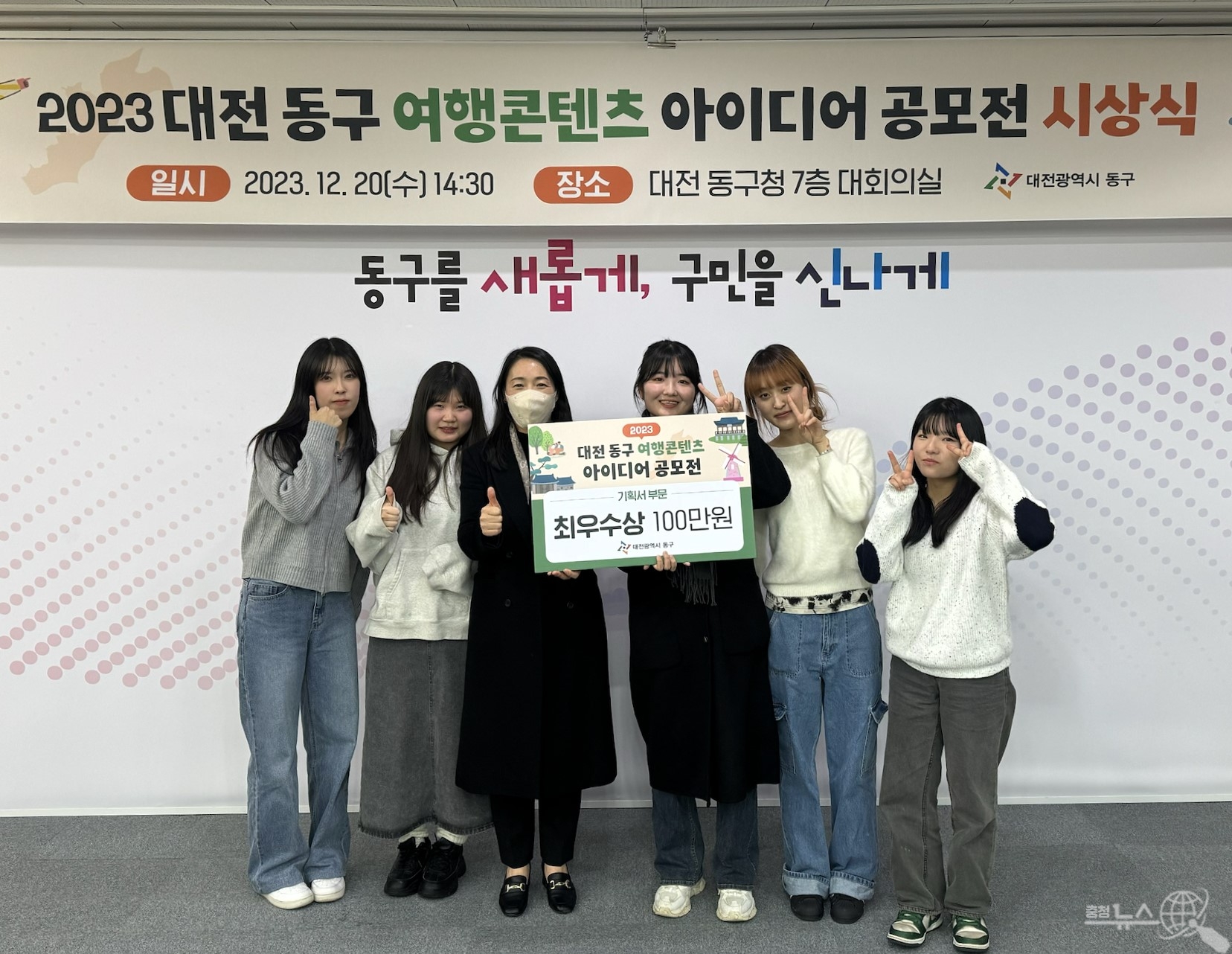 선문대학교(총장 문성제)는 미디어커뮤니케이션학부 학생들이 ‘2023 대전 동구 여행콘텐츠 아이디어 공모전’에서 최우수상을 받았다고 22일 밝혔다.