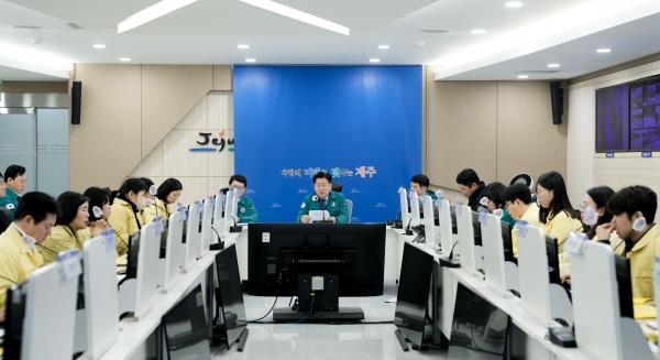 오영훈 지사는 상황실 내에서 운영 중인 폐쇄회로텔레비전을 통해 제주도 전역의 기상상황을 확인하고 대설 취약지역에 대한 점검과 관리를 강화할 것을 당부했다.