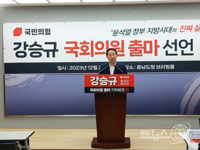 강승규 전 대통령실 시민사회수석이 내년 총선에서 충남 홍성·예산 선거구 출마를 공식화했다.