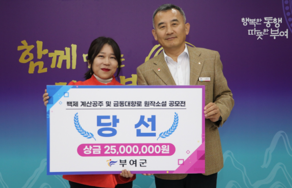 [충청뉴스큐] 부여군이 백제문화 콘텐츠 발굴과 관광자원 활용의 일환으로 진행한 ‘백제 계산공주 및 금동대향로 원작소설 공모전’ 시상식을 지난 26일 개최했다.