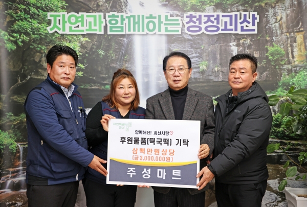 괴산읍 소재지의 주성마트는 2014년도부터 매해 삼계닭과 떡국떡을 후원해오고 있으며 올해에도 2024년 새해를 맞아 어려운 이웃에게 떡국떡을 후원하기로 했다.