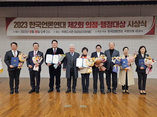 이날 시상식은 한국언론연대와 국민의힘 강대식 의원 공동주관으로 지방의회의원, 시민사회단체, 언론인 등의 추천을 받아 한 해 동안 지역주민들을 위해 모범적인 의정활동을 펼친 우수 의원을 선정하고 공로를 기리기 위해 마련됐다.