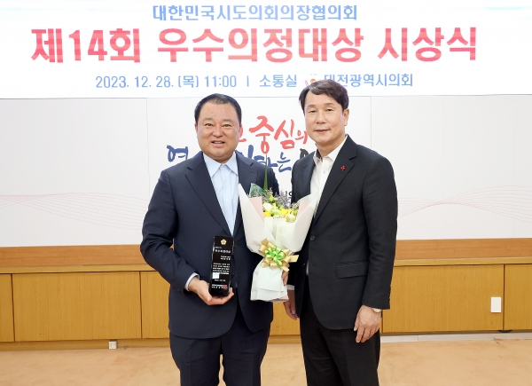 [충청뉴스큐] 대전시의회 산업건설위원회 송대윤 의원이 지난 28일‘대한민국시도의회의장협의회’에서 선정하는 2023년 제14회‘우수의정대상’수상자로 선정되는 영예를 안았다.