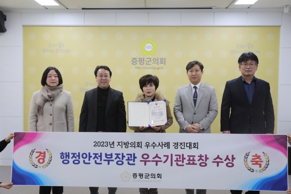 [충청뉴스큐] 증평군의회는 28일 ‘2023년 지방의회 우수사례 경진대회’에서 기관표창을 수상했다고 밝혔다.