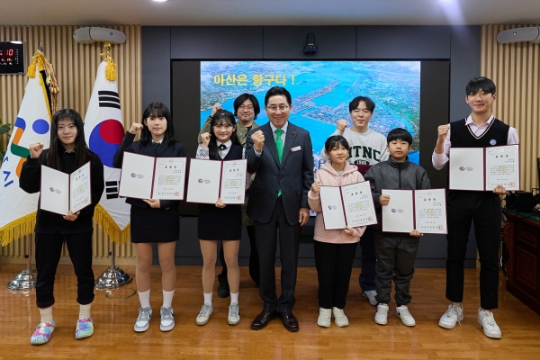 [충청뉴스큐] 아산시가 28일 시장실에서 체육 발전에 이바지한 시민과 직장운동경기부 지도자 및 선수에게 ‘시장 표창’을 수여했다.