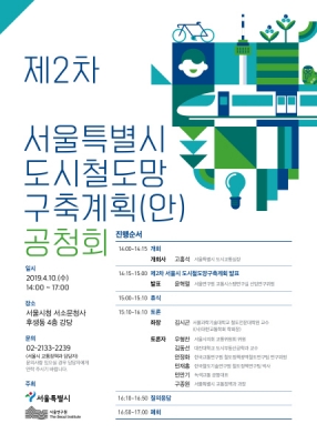 서울시는 4.10 오후 2시~5시 서울시청 서소문청사에서 ‘제2차 도시철도망 구축계획 발전방향’을 주제로 공청회를 개최한다고 밝혔다.