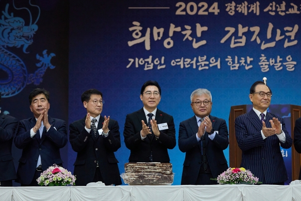 [충청뉴스큐] 박경귀 아산시장이 5일 충남 경제 번영 의지를 다지는 ‘2024 충남 경제계 신년교례회’에 참석했다.