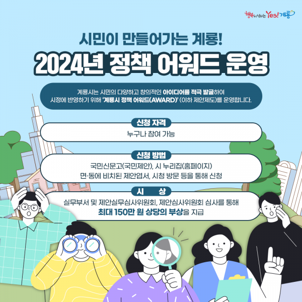 [충청뉴스큐] 계룡시는 시민의 다양하고 창의적인 아이디어를 적극 발굴해 시정에 반영하기 위해 ‘계룡시 정책 어워드’ 를 운영한다고 밝혔다.