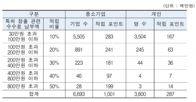 특허청에 따르면, 올해에는 지난해 특허·디자인 창출 활동에 따라 개인 3,800명과 중소기업 6,693개 기업이 총 13억원 상당의 지식재산포인트를 부여 받게 되며, 1인당 최저 3만원에서 최고 550만원, 1개 기업당 최저 3만원에서 최고 1800만원 상당의 지식재산포인트를 적립 받는 것으로 나타났다.