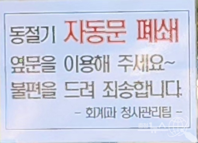 동절기 난방비 절약 명목하에 자동문 폐쇄-