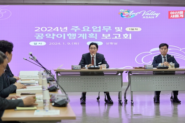 [충청뉴스큐] 아산시는 9일 시청 상황실에서 ‘2024년 주요업무 추진계획 보고회’를 열고 민선 8기의 후반기 공약사업 추진계획을 점검했다.