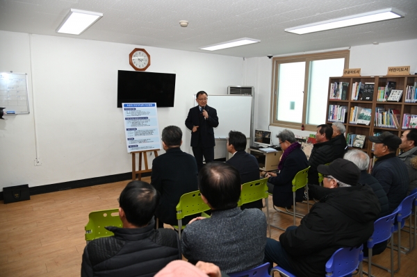 이날 박정현 군수는 이규채 초촌면 노인회장이 대표로 건의한 주민자치센터의 문제점에 대해 귀 기울였다.