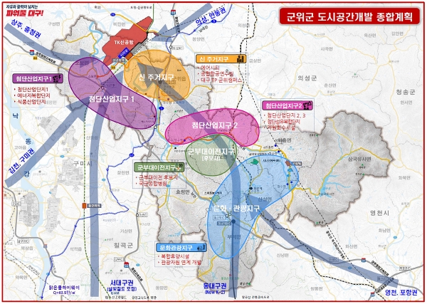 [충청뉴스큐] 대구광역시는 대구경북신공항 개항에 대비하고 군위군을 TK 미래 100년을 이끌 ‘글로벌 신공항 관문’으로 발전시키기 위한 ‘군위군 도시공간개발 종합계획’을 수립했다.