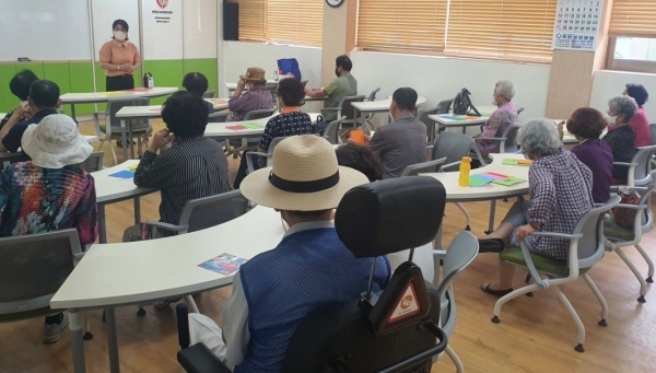 치매예방교실은 지역 어르신들의 치매 및 인지기능 저하를 예방하고 치매에 대한 인식개선을 위한 프로그램으로 치매안심센터와 지리적 접근성이 떨어지는 읍·면 12개 지역 경로당에서 주 1회 총 10주간 진행된다.