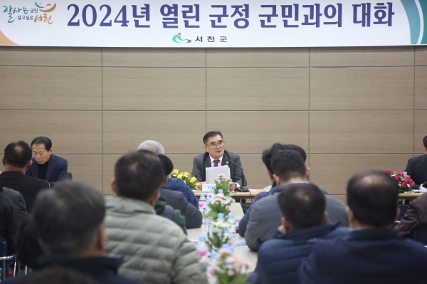 군민과의 대화에 앞서 조성룡 기획예산담당관이 민선8기 서천군이 추진할 역점시책 등을 주민들과 공직자들에게 알려 서천의 비전을 공유하고 향후 군 발전을 위한 주민들의 적극적인 관심과 참여를 당부했다.