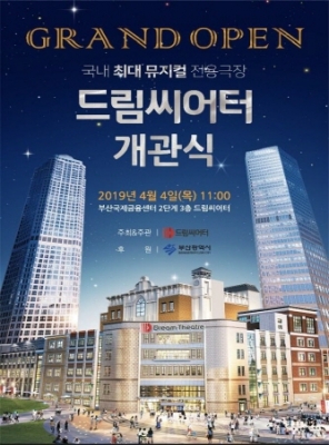 [충청뉴스큐] 부산시는 오는 4일 오전 11시 부산국제금융센터 2단계 개발 사업으로 완공된 49층 건물에 BIFC 핵심 문화 인프라 역할을 수행할 뮤지컬전용극장인 ‘드림씨어터’ 개관식을 개최한다고 밝혔다.