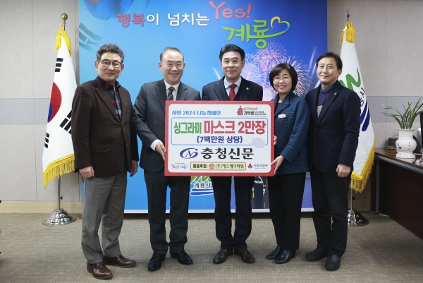 [충청뉴스큐] 계룡시는 지난 16일 충청신문사로부터 마스크 2만장을 기탁받았다고 밝혔다.