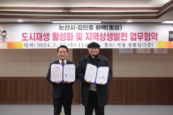 [충청뉴스큐] 논산시는 17일 논산시청 상황실에서 빛섬과 도시재생 및 지역상생발전 협약을 체결했다고 밝혔다.