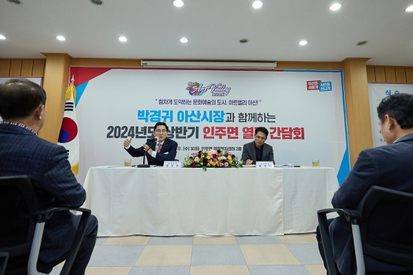 박 시장은 간담회 시작에 앞서 “인주는 아산 교통의 중심지이자 물류의 핵심지로 떠오르고 있다”고 말했다.
