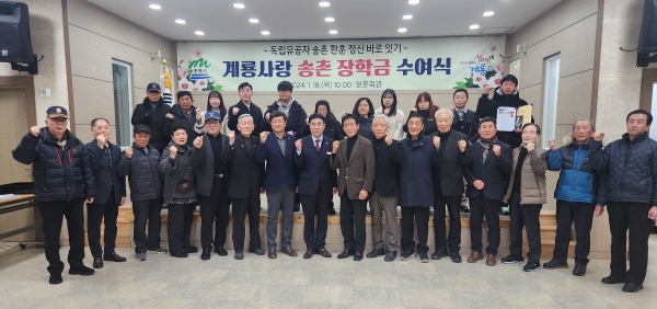 [충청뉴스큐] 계룡시는 18일 관내 엄사면에 소재한 보훈회관에서 ‘송촌 장학금’ 수여식을 개최했다고 밝혔다.